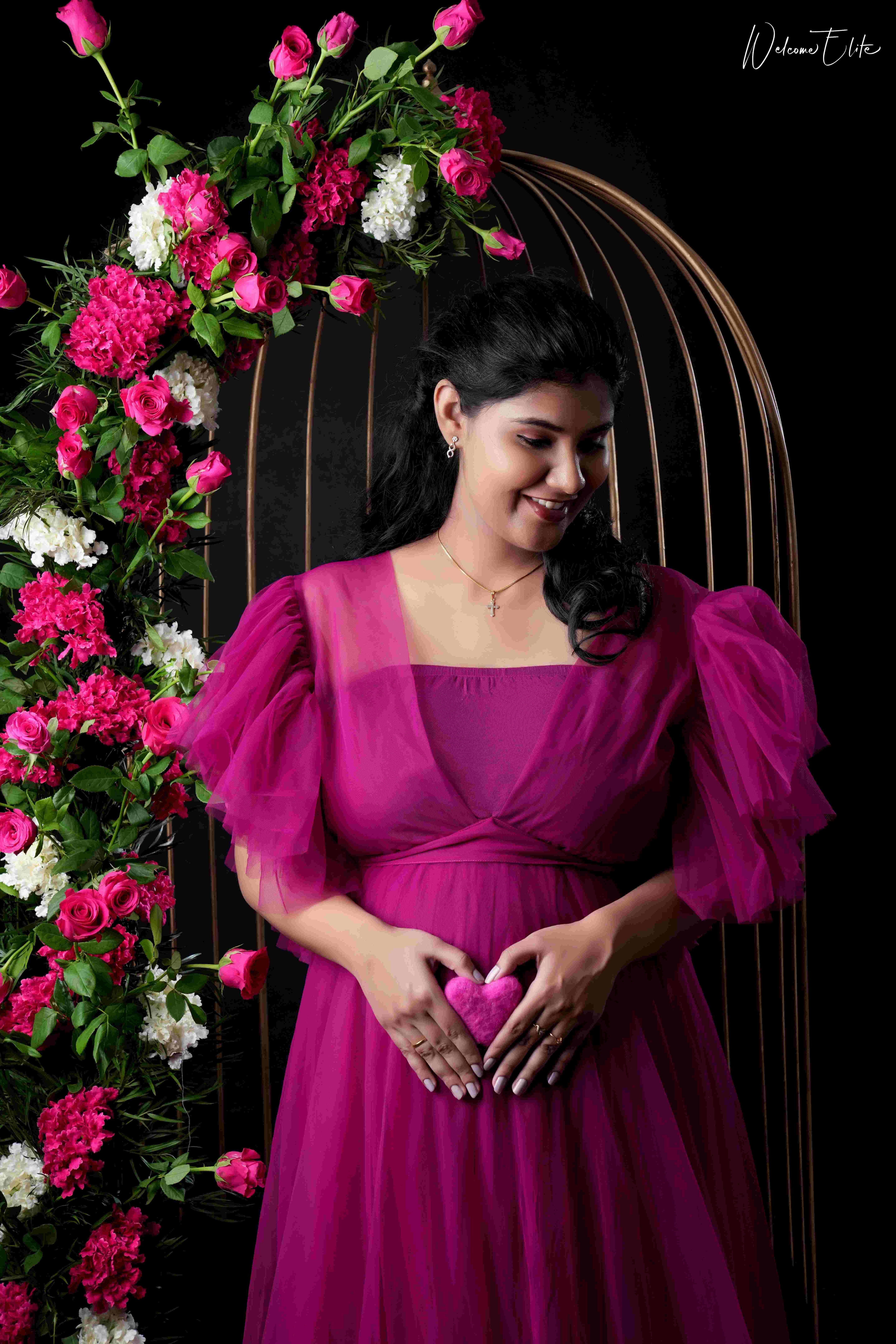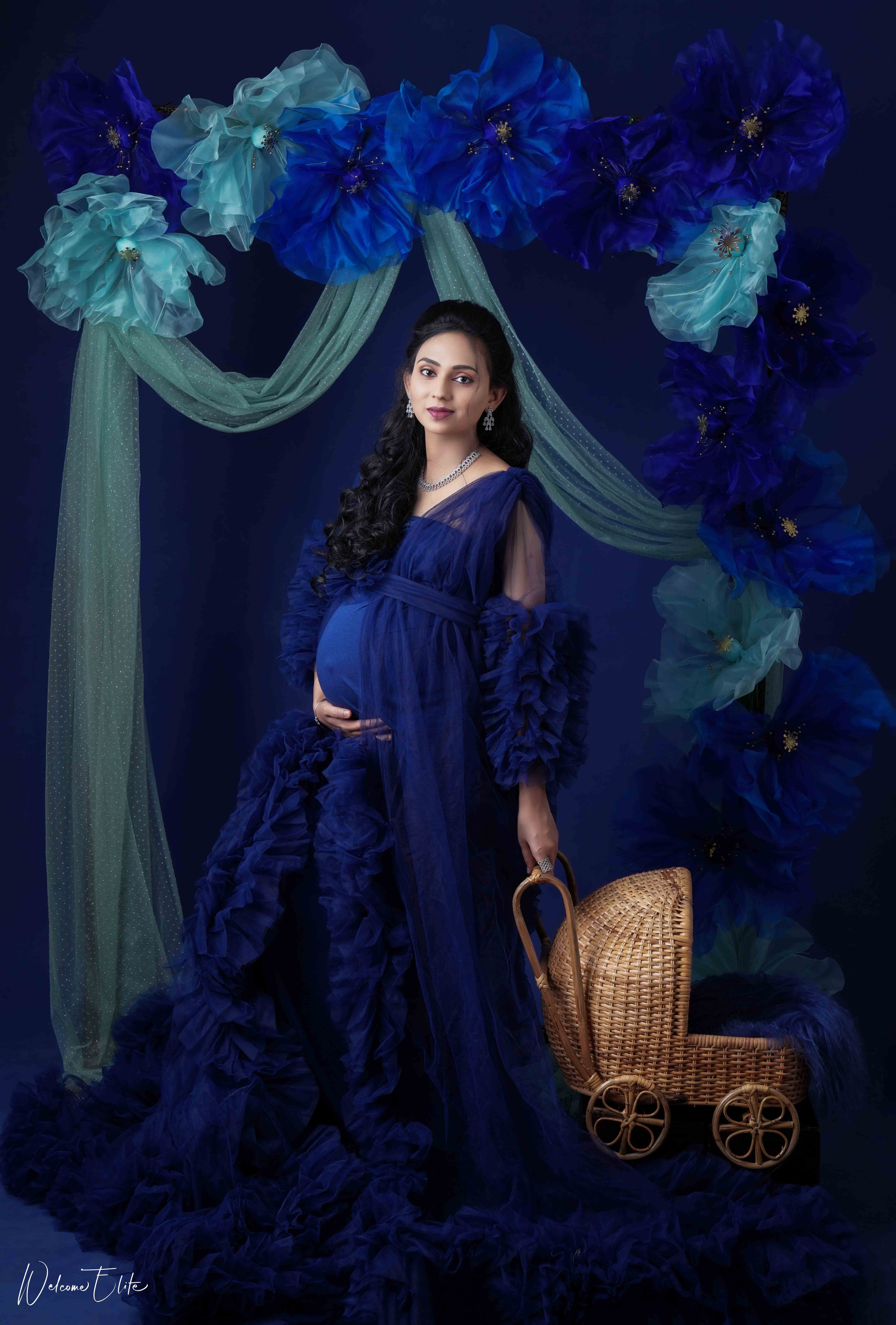 Maternity Portrait a > Photo shoot of Mom & Couple > Pre-shoot consultation will be given for maternity gown selection. > Maternity gown of mom can be provided from us or from your end. > You can choose best Ten pics out of multiple shots. > Ten Edited pics - Soft copy email, One pic 12”X18” Print with Frame